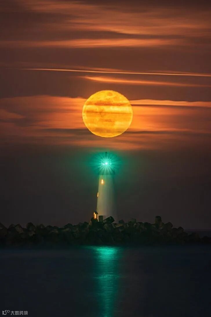 13.今年的最后一个超级月亮,升过圣克鲁斯的沃尔顿灯塔