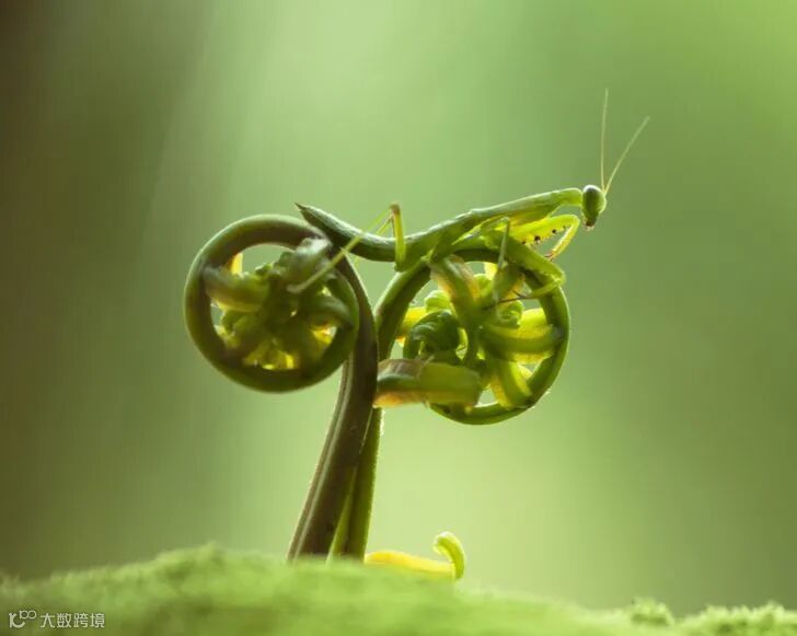 17.这只螳螂看起来好像正在骑自行车。