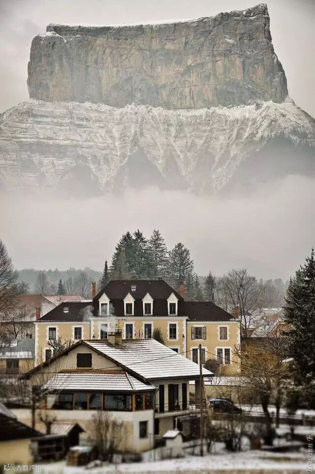远处的高山,迷雾隐藏了山脚的部分,看起来就像是悬浮在空中一般。