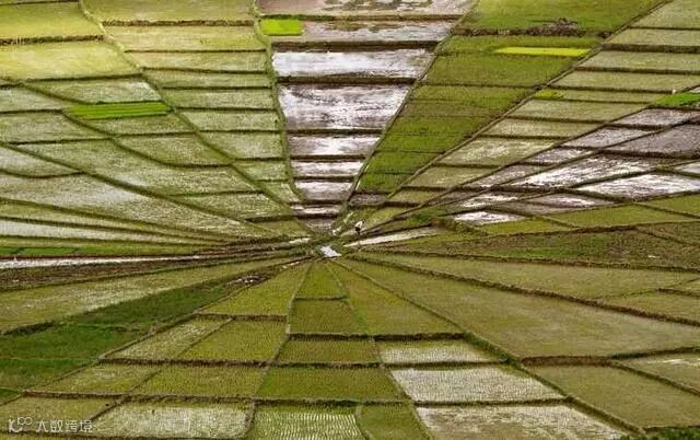 一块蛛网状的田地,给人一种折叠平行空间的错觉