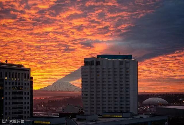 上峰在云层上投下的阴影,仿佛世界末日降临,位于美国西雅图的图雷尼尔山。