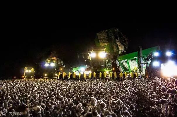 这是在人头攒动的演唱会现场?其实只是晚上农场里的棉花地,收割机正在收割棉花的画面!