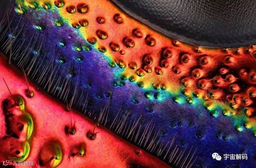 进一步放大后的宝石甲虫甲壳