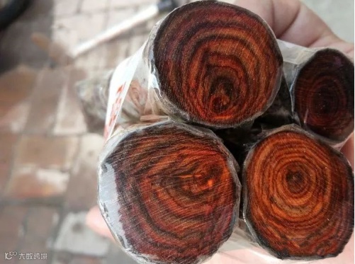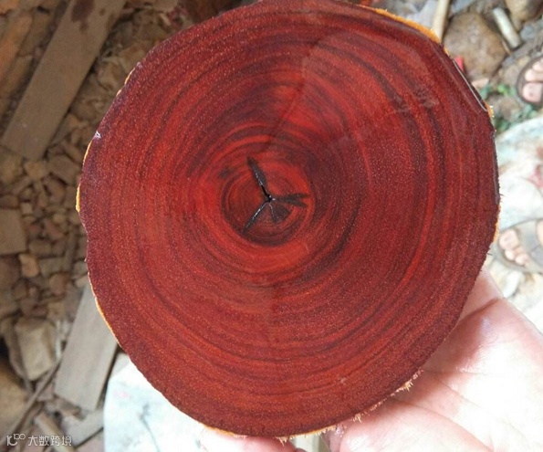纹理交错、清晰,颜色突兀,在红木中属于比较漂亮的木材,有微香气,生长年轮不明显。
