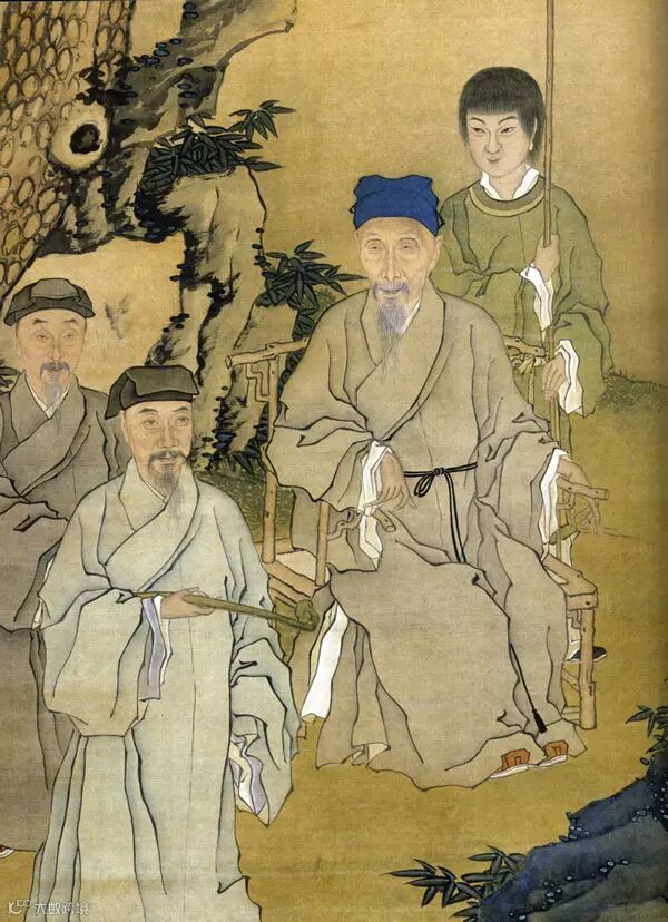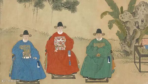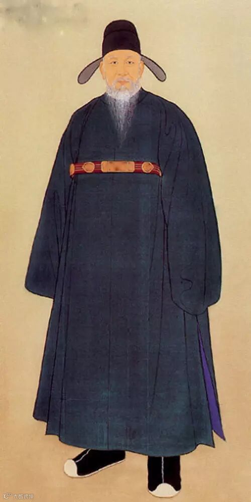 明代的儒士文人大多穿一身蓝色或黑色的长袍,也叫直裰,这种袍子衣身宽松,衣长一般到脚面、袖子肥大,袖长也一律过手,四周镶有宽边。与直裰相配的,通常是儒巾或四方平定巾。