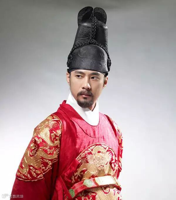 朝鲜王朝时期,朝鲜国王的官服是红底金色图案的龙袍,翼善冠较高,服装较短,通常露出鞋筒。