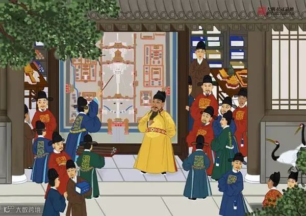 洪武二十四年,再制定品冠补子纹样。戴乌纱帽、身穿盘补服成为明代官吏的主要服饰,以补子来区分官职。