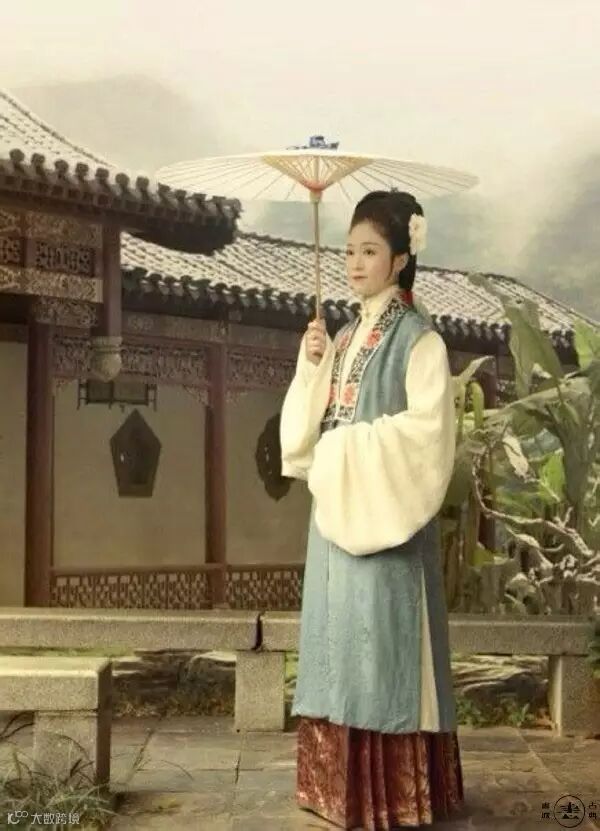 明代女子的衣裙在中国历代服饰中,样式最丰富、制作最精致,色彩搭配也最和谐。唐宋的襦裙、背子在沿用时,又增加了彩绣的云肩,是女子更加光彩照人。