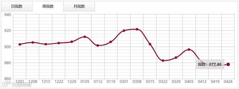 本周人造板指数重回升势,报收877.68点,环比上涨0.19%。各大市场当中,鱼珠人造板指数、临沂人造板指数分别下跌0.23%、0.14%;福人人造板指数、大西南人造板指数分别拉升0.08%、1.36%。