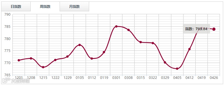 本周锯材指数缺乏追涨动力,报收783.84点,环比上涨0.47%。其中鱼珠锯材指数、福人锯材指数分别拉升0.05%、0.14%;大西南锯材指数、南康锯材指数分别下跌0.63%、0.17%。