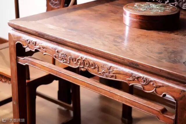 吸取建筑大木梁架的造法,家具的腿部支撑立柱的造型,就同建筑的立柱十分相像,多直接落于地面。