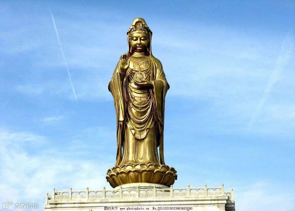 位于普陀山上,总高33米。这座南海观音铜像是普陀山的标志性建筑之一,为“海天佛国”的象征。“南海观音”四字为赵朴初所题。