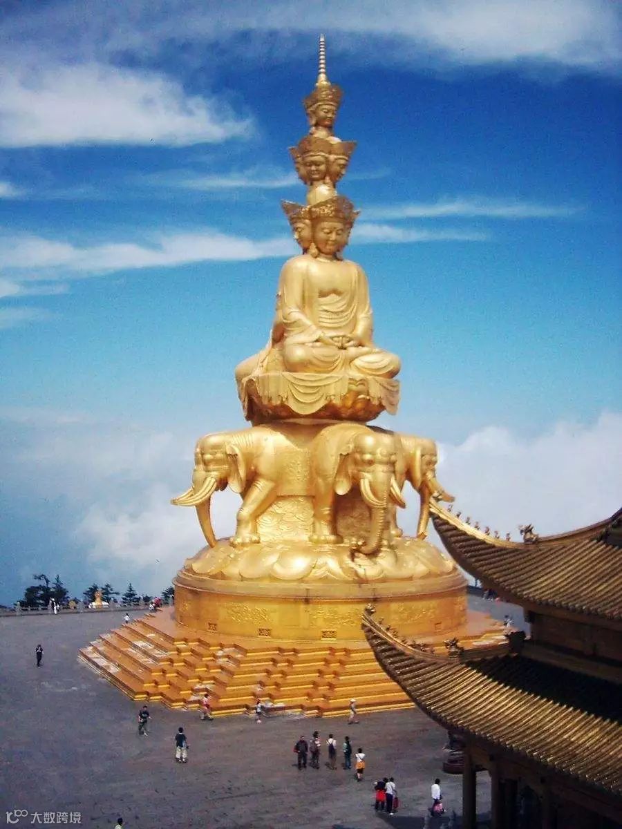十方普贤金像位于峨眉山金顶,通高48米,是目前世界上最大、最高的十方普贤像。