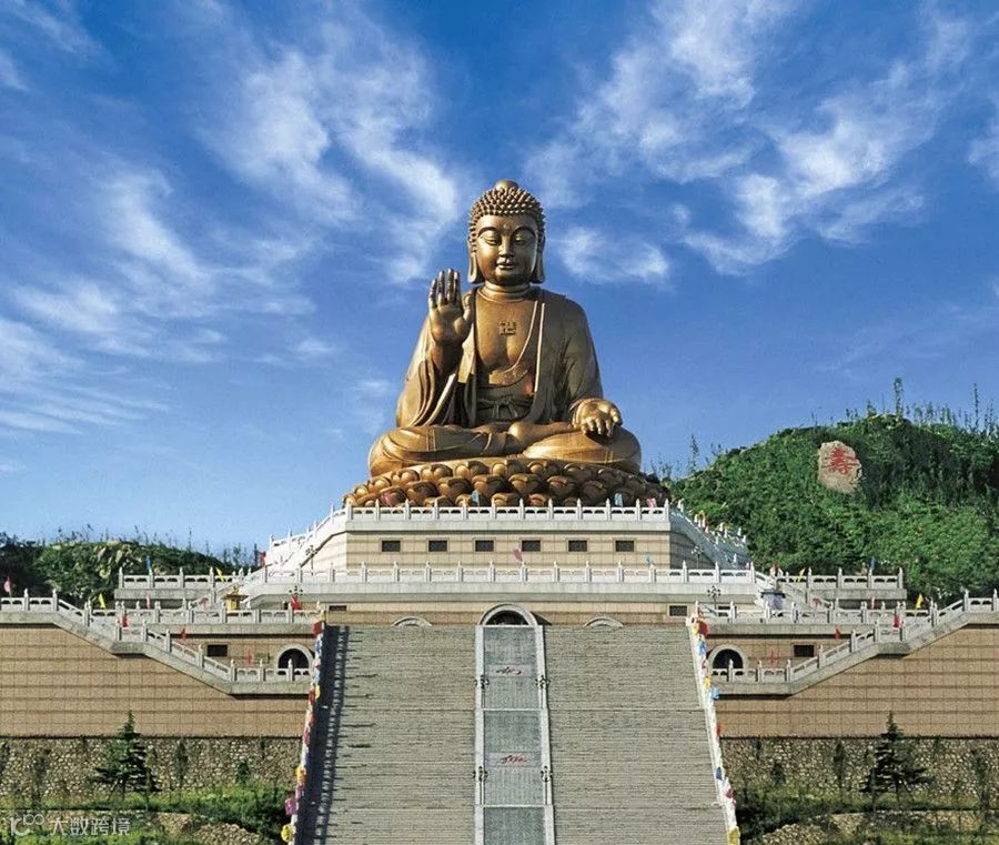南山大佛(释迦牟尼)——世界第一锡青铜铸大坐佛。位于山东省烟台南山旅游区内,高38.66米,由232件佛体、108块莲花瓣、302个发髻、共642块锡青铜铸件组合而成这座举世罕见的锡青铜释迦牟尼大坐佛,堪称目前世界第一铜铸大坐佛。
