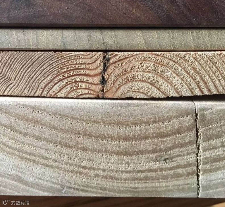 下面一组图便是较为常见的造假水平了。就表面处理来看,木材有着美观的“山形纹”,可以迷惑住大部分的消费者甚至业内人士了。