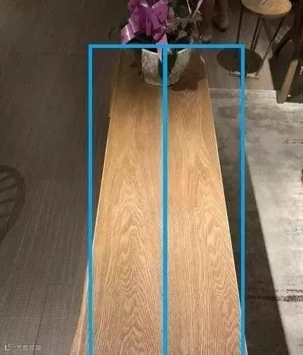 上图中,相似的木纹用蓝框标了出来。框线中的木纹几乎一致,这也是贴皮的典型特征。也就是说,在无法对多个端面进行分析的情况下,用比对木纹的方式也可以识破一些伪实木。