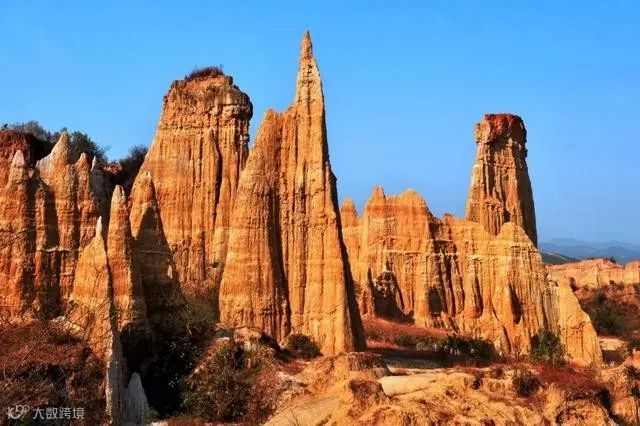 在这里,仿佛进入新世界,土柱身上混有的石英、玛瑙显露后,在太阳的照射下,会放出奇异的光。