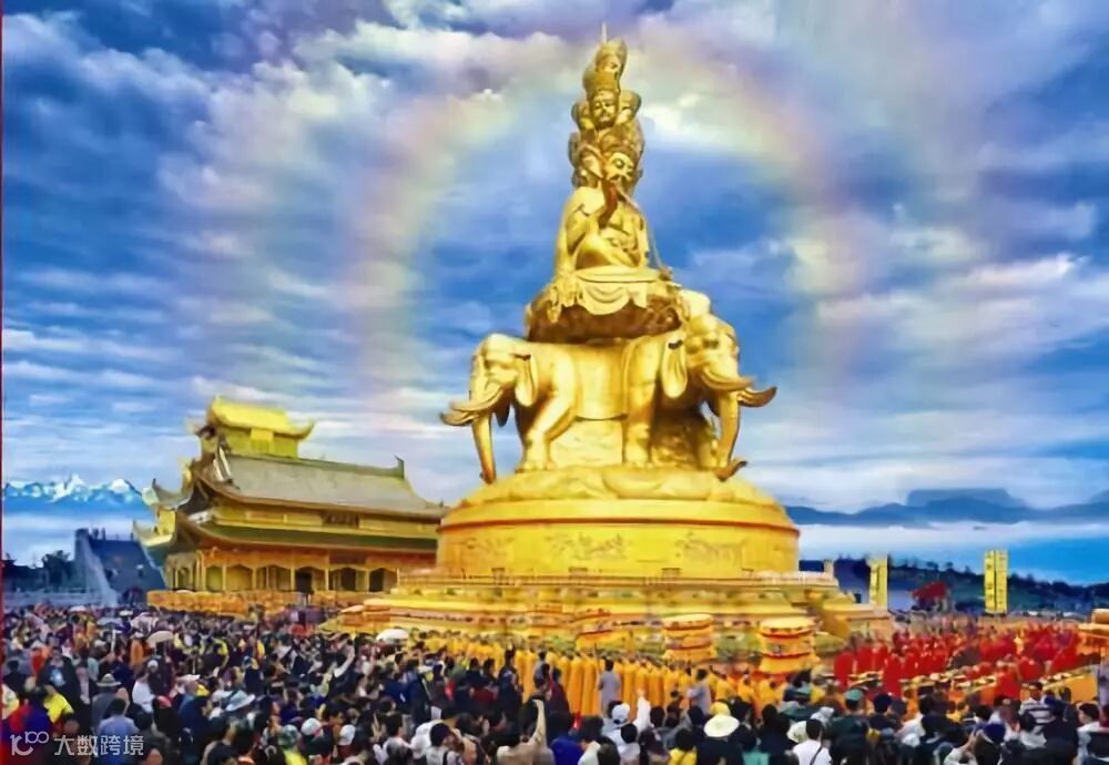 在金顶舍身岩上弯腰向下看,会看到一个五彩的光环漂浮在云层中,自己的身影也在光环之内。