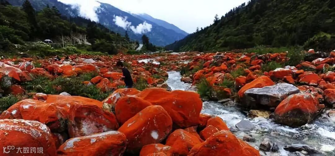 你见过红色的石头吗?在四川海螺沟景区,就有这样的红色石头,特别艳丽。