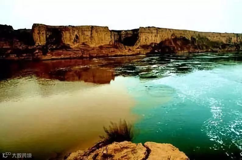 这是我国的泾河和渭河。两河交汇处,两种颜色,完全不会互相渗透,各自流淌。