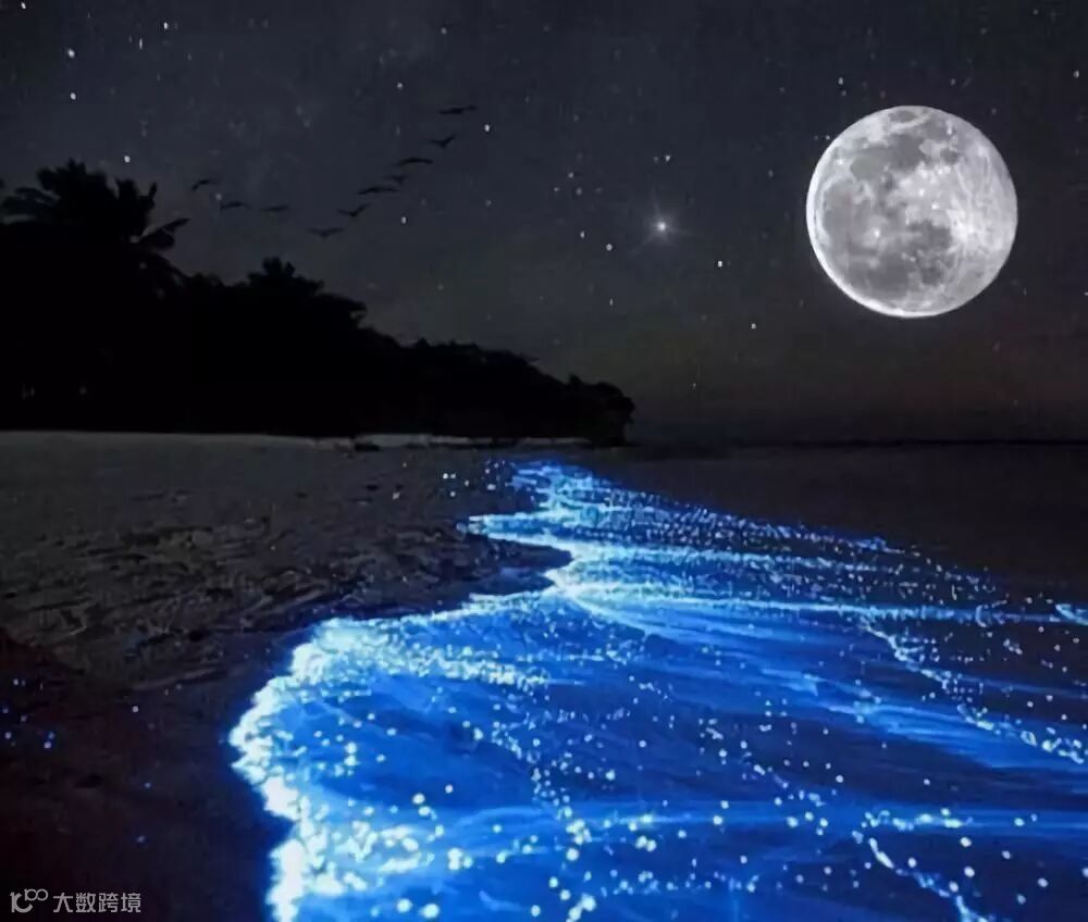看着这张图,晚上的海水竟然发出耀眼的蓝色,闪闪发光,令人眩目。
