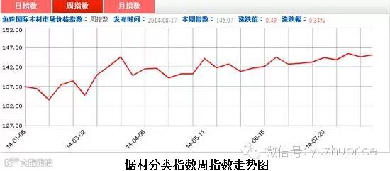 本周锯材市场稳中有升,指数收于145.07点,环比上涨0.49点,涨幅为0.34%。从基本面上看,外围市场悲观情绪依旧浓厚,商谈气氛平静,人气依旧略显不足。但是,随着传统旺季的即将到来,锯材市场后市行情或将有所好转。