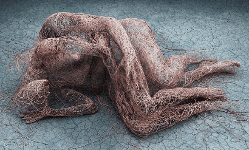 在这些作品里,肌肤像是流水般滑动而固体则变成流水。这些画作都被制成动图让观赏的人可以更直接感受到作品的流动,下面就来感受一下吧。