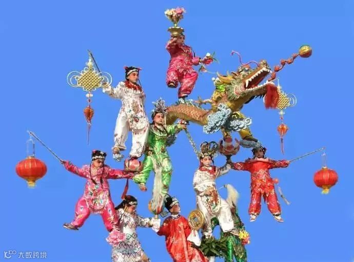 潮汕各地还会搭戏棚演潮剧、山歌剧、皮影戏,锣鼓队、虎狮队、英歌队、舞龙队走访各个村镇进行表演、拜年。