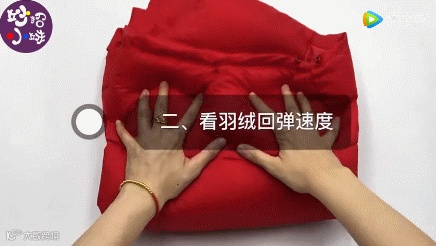 如果回弹速度慢,那么羽绒的含量较低,里面是其他的填充物。