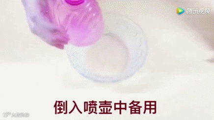 将洗衣液与白醋,还有清水按照1:1:2的比例,倒入喷壶混合均匀。