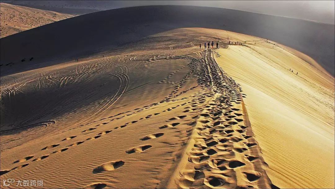 白天人们爬沙山留下的脚印,
