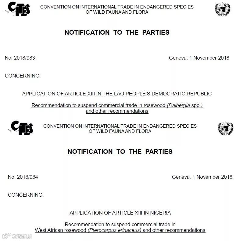 2018年11月1日瑞士日内瓦(Geneva)消息,濒危野生动植物种国际贸易公约组织(Convention on international trade in endangered species of wild fauna and flora,CITES)发布2018年83号(No. 2018/083)和84号缔约方(No. 2018/084)通知。