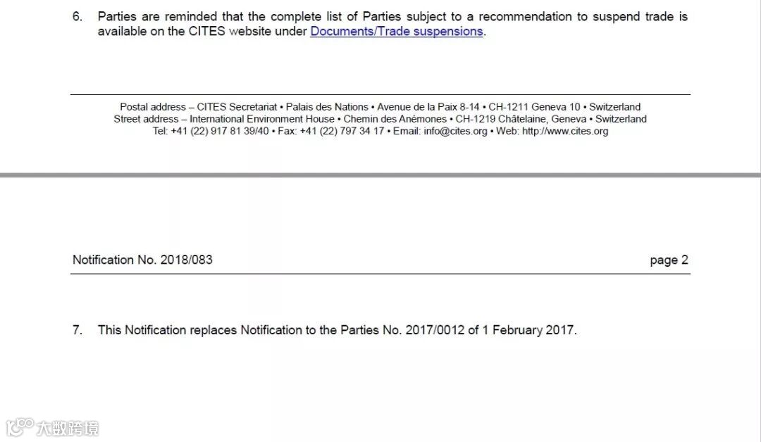 以上图片文件为CITES2018年第83号缔约方通知原文 来源 CITES