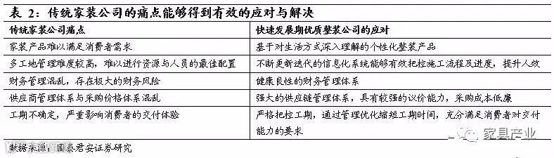 我们发现稳健发展的整装公司的共性在于有效解决了传统家装公司做不大的痛点,在发展初期就在产品体系、财务管理、信息化水平等方面奠定了夯实的基础,不断的在正确的方向上进行优化迭代。