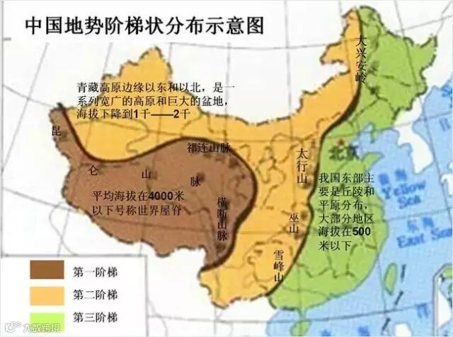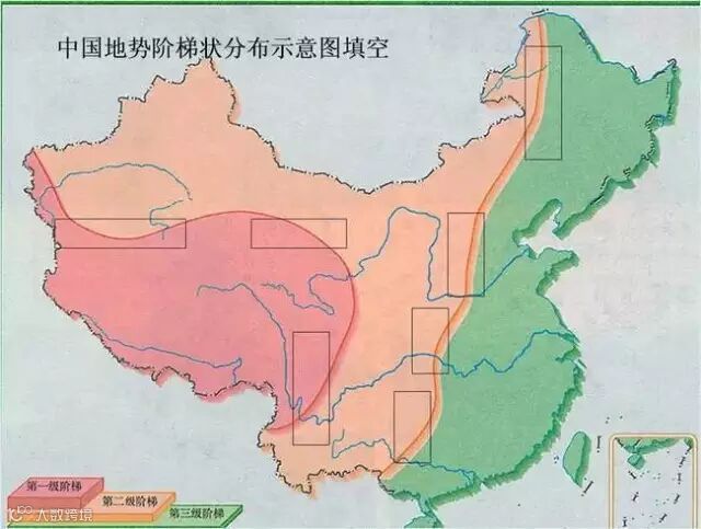中国地势阶梯状分布示意图