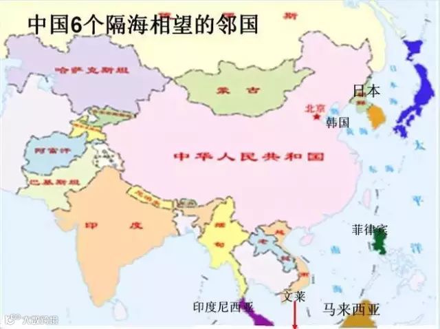 中国6个隔海相望的邻国