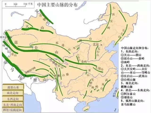 中国主要山脉的分布