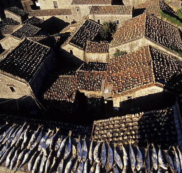 瓦片层层叠叠地铺在坡面上,
