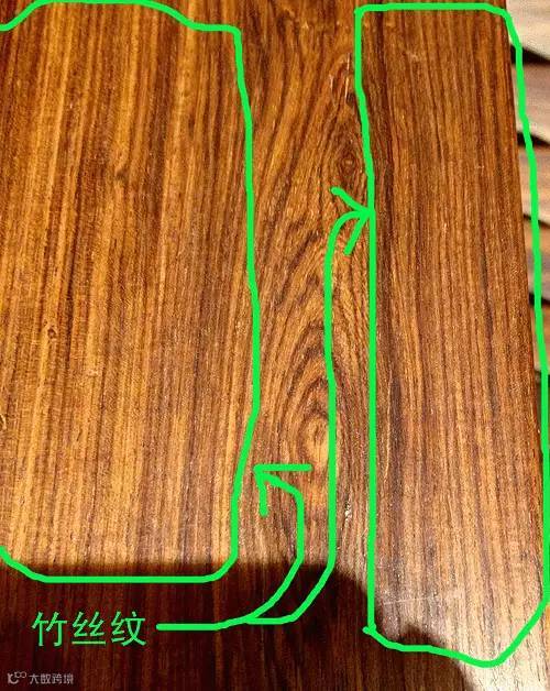 特别是竹丝纹其纹理顺直而长,且没有大的起伏变化,与我们常见顺直的竹丝纹理较为相似,像这样顺直的海南黄花梨材料虽然不够艳丽,但却显得典雅庄重,比较适合做一些大件稳重的器物。