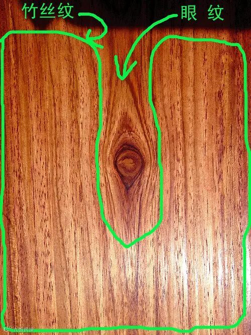 在海南黄花梨直径较大的圆木和树龄相对较长的木材开出来的板面上,以树干材料为主,其纹理多为山水纹和竹丝纹,一般小径材料这种纹理不多,这两种纹理在其他的木材中也很常见。