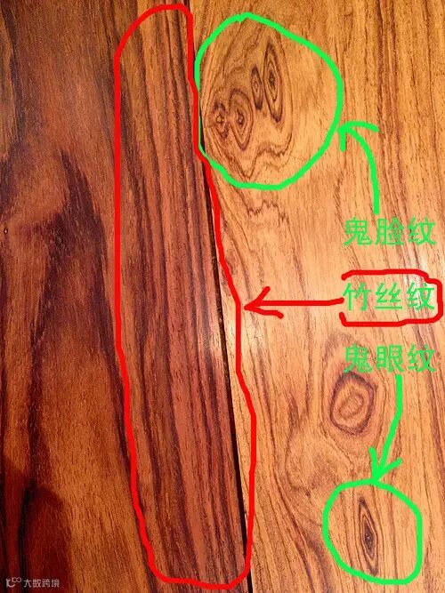 黄花梨树上一个树杈,反映到主干上时,会形成一个疖痕,这个疖痕就叫鬼脸,鬼脸像一张脸一样,要让人一眼看去能想象出一张脸或一张动物脸叫做鬼脸纹,鬼脸也称为"鬼脸儿" " 娃娃脸"。