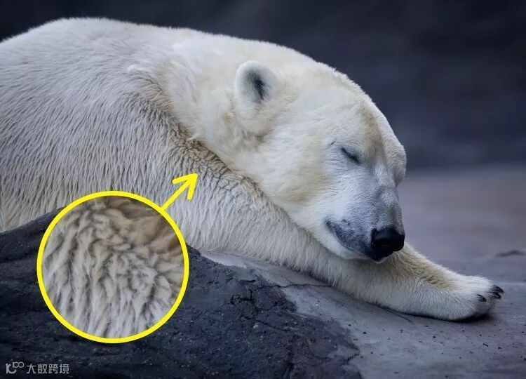 事实上,北极熊的皮毛没有色素,它是半透明的。他们的皮肤是黑色的,这有助于他们保持温暖,因为黑色更容易吸收阳光,也能加快游泳后皮毛变干的过程。