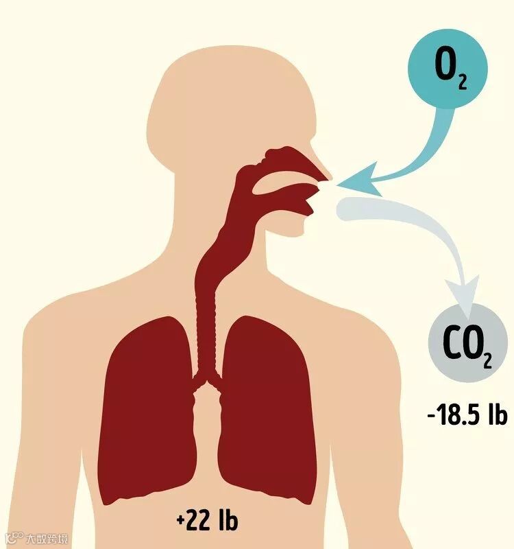 澳洲物理学家鲁本米尔曼 (Ruben Meerman) 进行了一系列实验,发现人们会呼出脂肪。他已证明,大约22磅的脂肪会变成18.5磅的二氧化碳,以呼出的空气形式离开人体,而我们我们会透过液体流失大约3.5磅 (排尿、汗水和眼泪)。