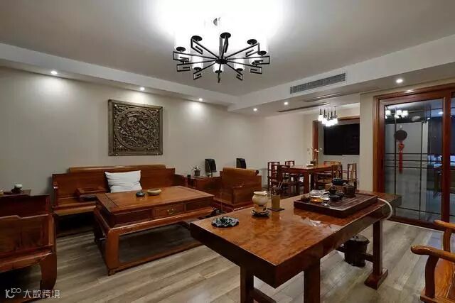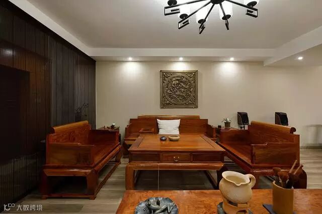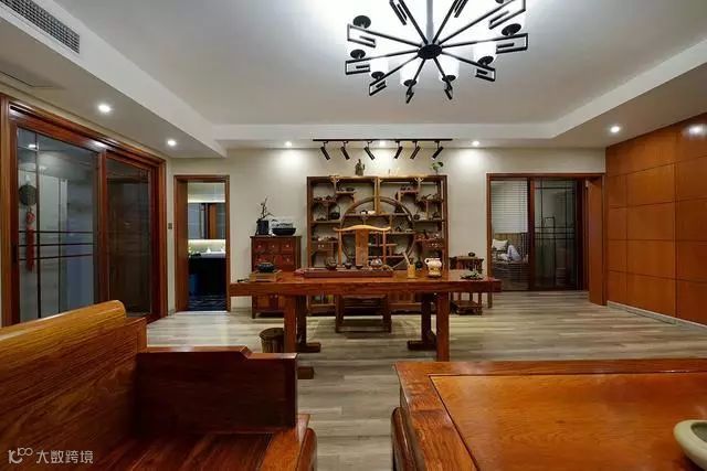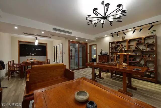 偏爱喝茶,偏爱中式,不需要太复杂。新中式,又包含了现代生活气息,光源上舍弃了以往的烛光环境,使用简洁几何灯具,大量采用自然光!
