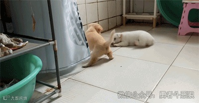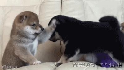 就连小奶狗在打架的时候尾巴也会因为情绪兴奋来回摆动