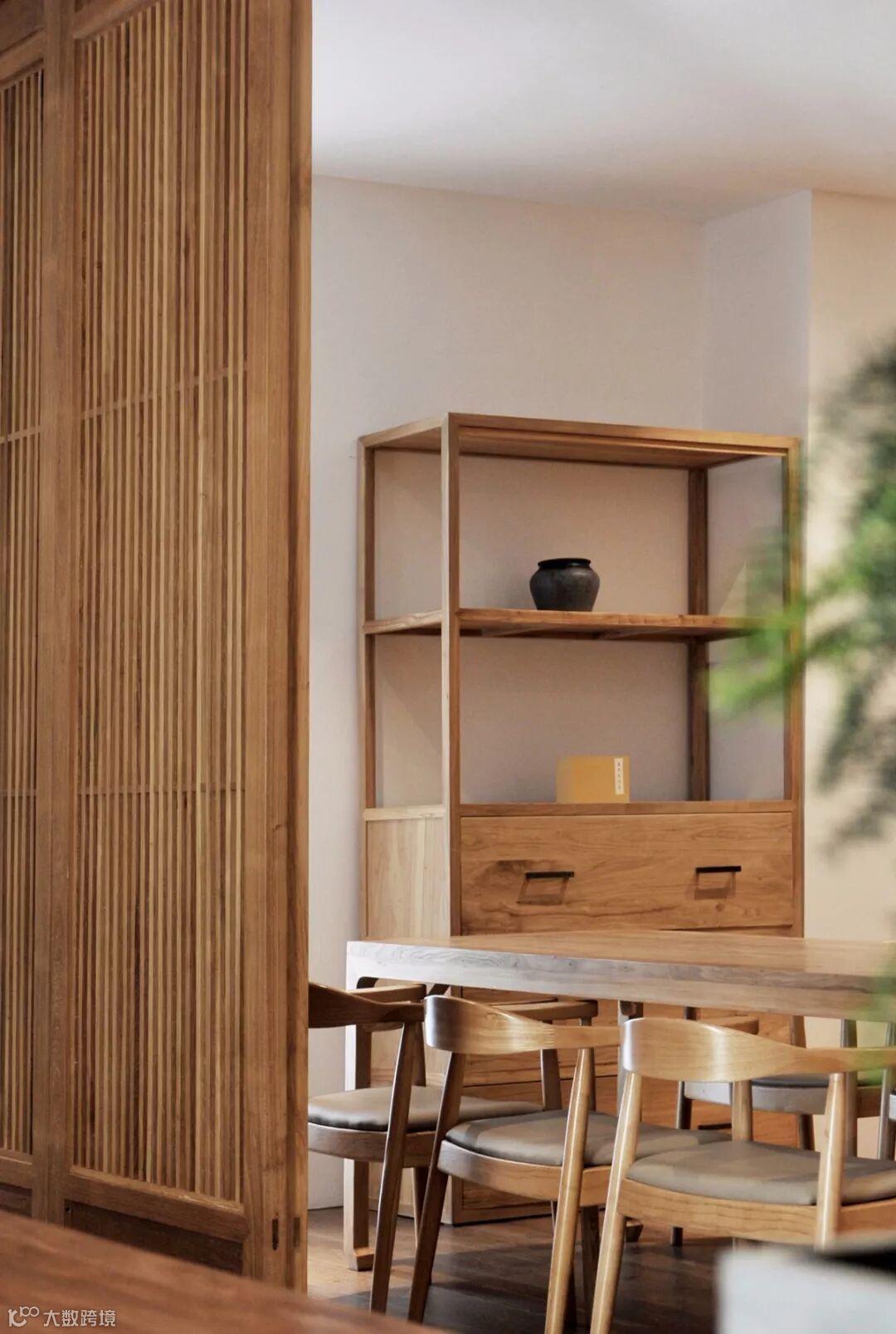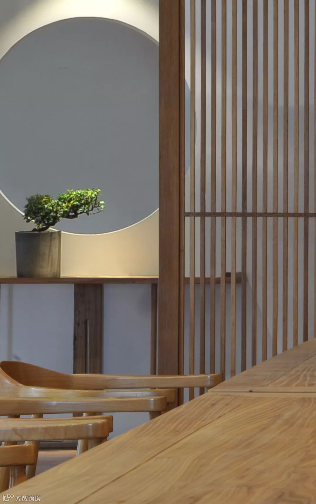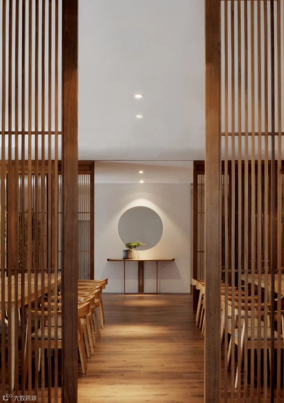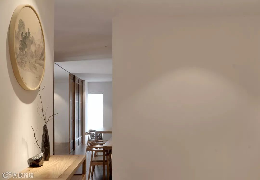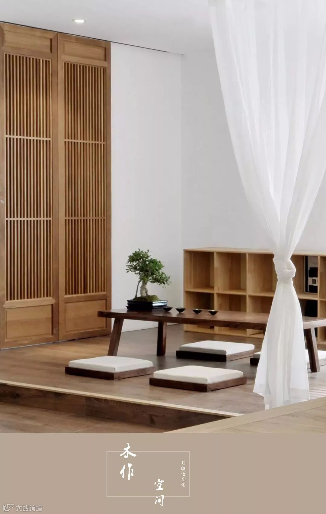 木作的空间, 呈现木的简素本色。以求保持原木的素色和纹理,使空间简洁利索,同时体现一种禅宗的简素精神。利用简素的物体和天然材料来模糊室内界之间的关系,,让室内脱离局部的装饰,使人的心境平和与安祥,超然物外,在这纯自然,高简素的色调中,展现出朴素,简约之美,正是禅意空间的体现。