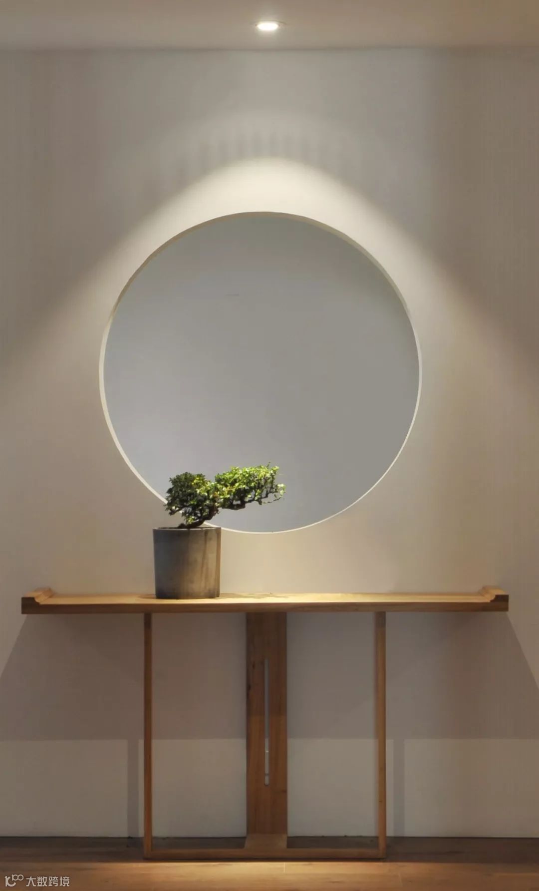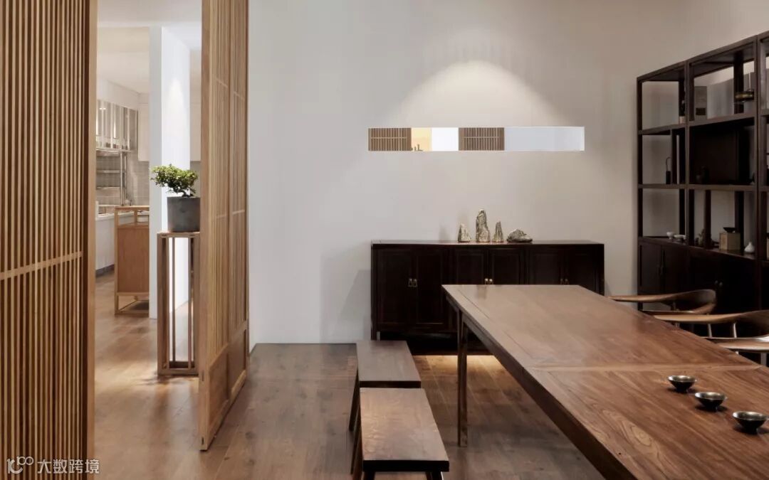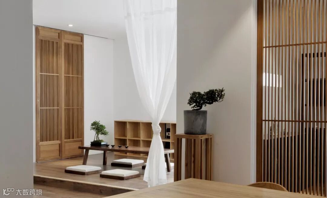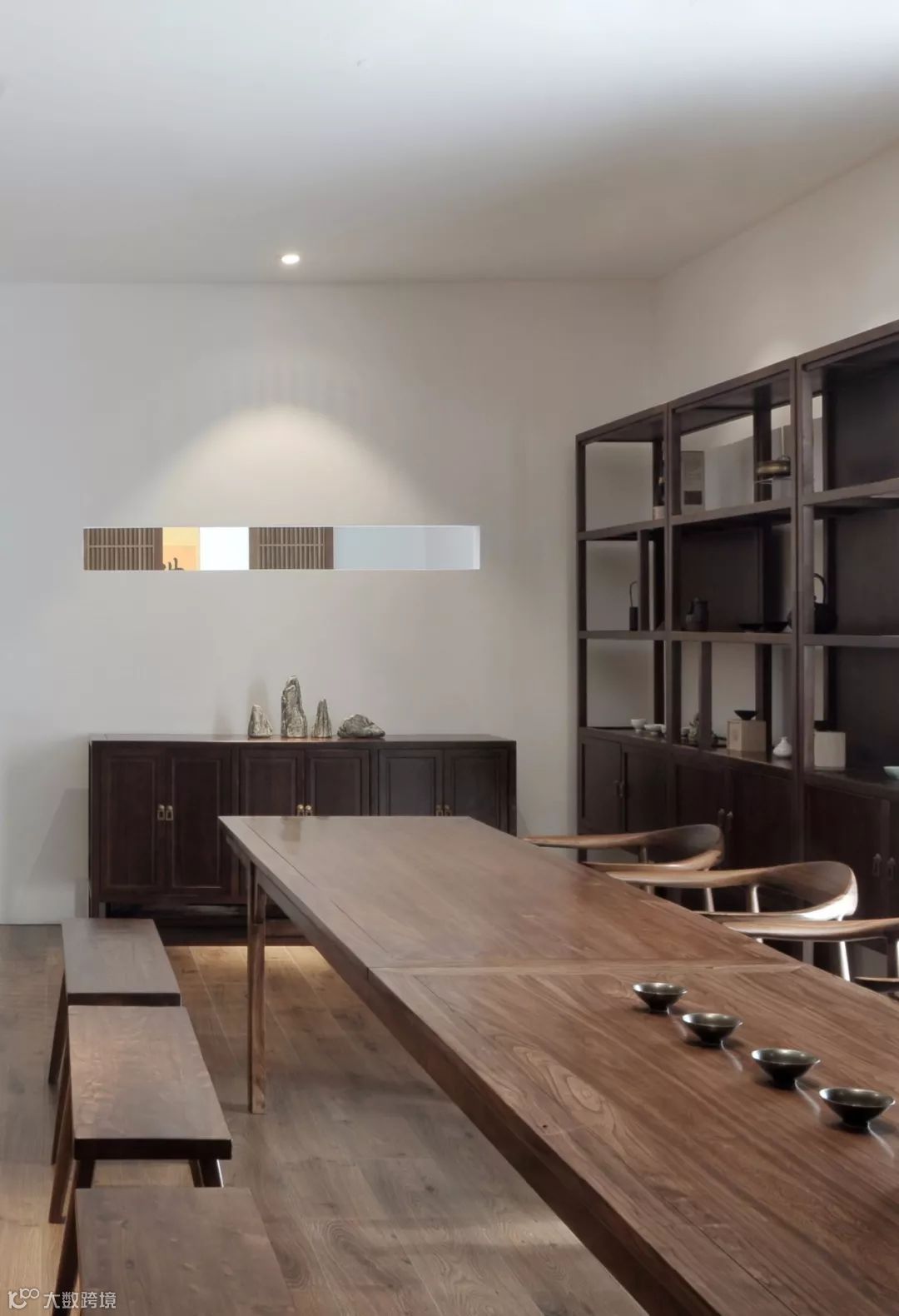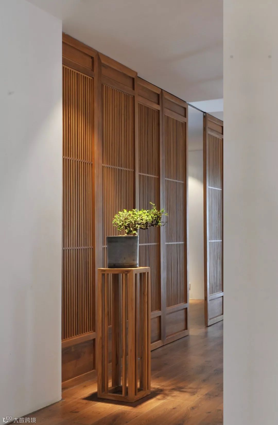 木作的空间, 呈现木的简素本色。以求保持原木的素色和纹理,使空间简洁利索,同时体现一种禅宗的简素精神。利用简素的物体和天然材料来模糊室内界之间的关系,,让室内脱离局部的装饰,使人的心境平和与安祥,超然物外,在这纯自然,高简素的色调中,展现出朴素,简约之美,正是禅意空间的体现。