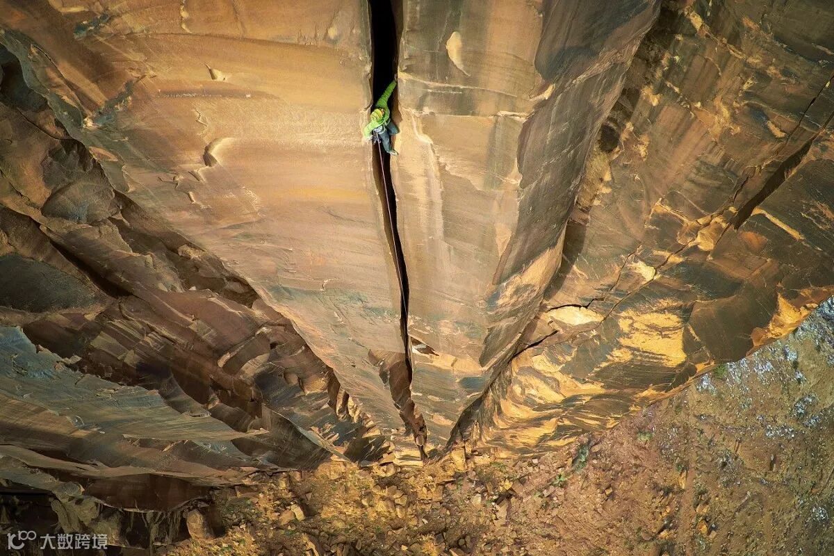 登山者正在尝试攀登峡谷,世上无难事,只要肯攀登。