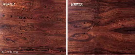 海黄区别于其它黄花梨最大的特点是"纹路群的中心"