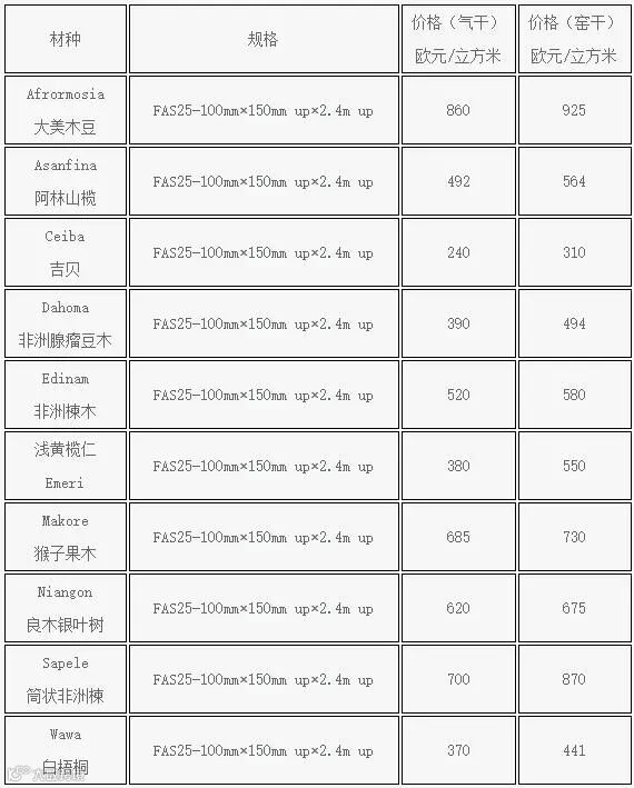 11月上旬加纳锯材报价